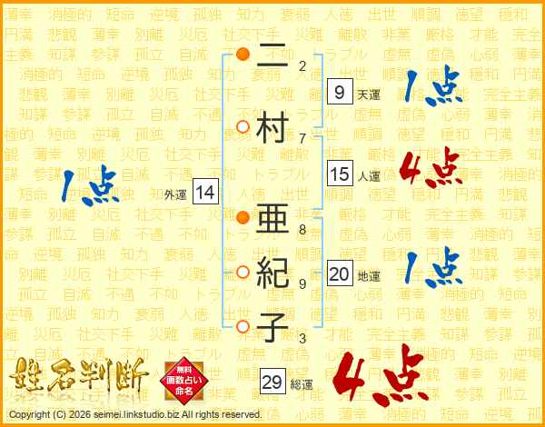 二村亜紀子さんの総運は29画の4点!