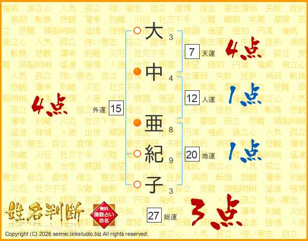大中亜紀子さんの天運は7画の4点!