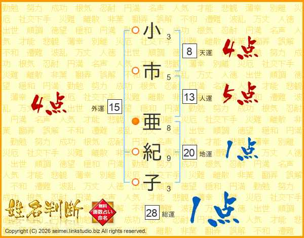 小市亜紀子さんの総運は28画の1点!