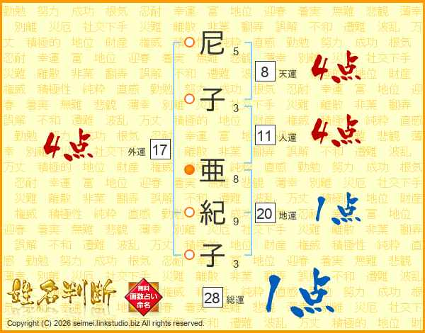尼子亜紀子さんの総運は28画の1点!