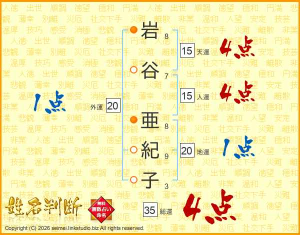 岩谷亜紀子さんの総運は35画の4点!