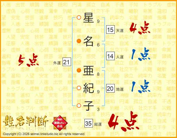 星名亜紀子さんの外運は21画の5点!