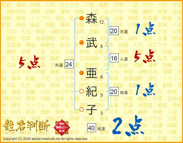 森武亜紀子さんの外運は24画の5点!
