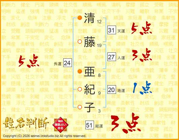 清藤亜紀子さんの天運は31画の5点!