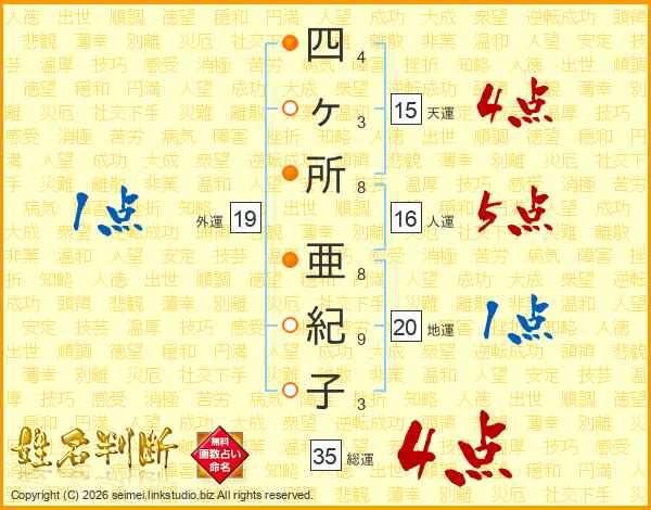 四(4画)ヶ(3画)所(8画) 亜(8画)紀(9画)子(3画)