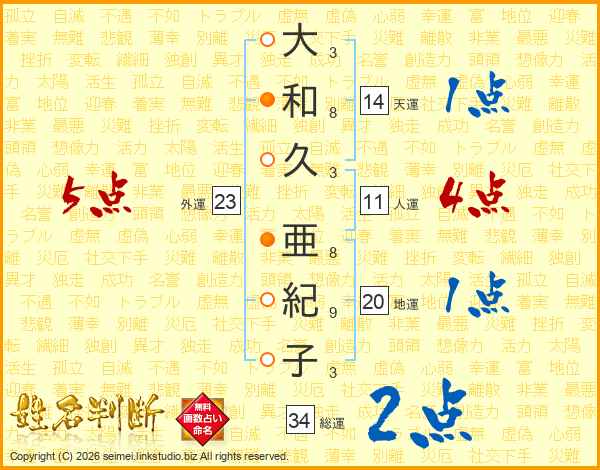 大和久亜紀子さんの総運は34画の2点!