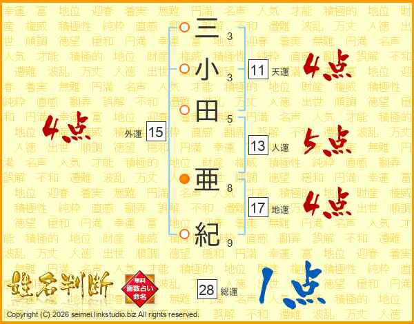三小田亜紀さんの総運は28画の1点!