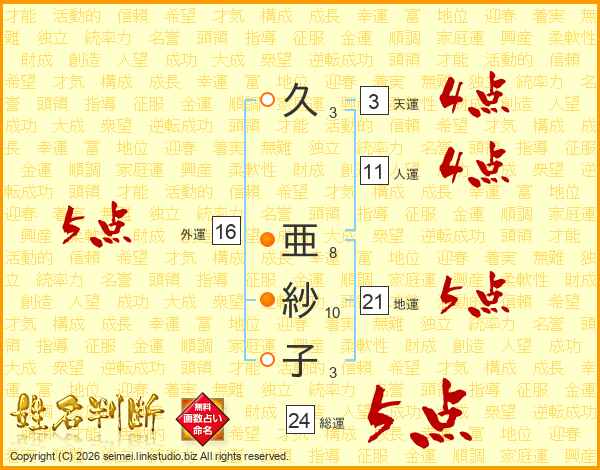 久亜紗子さんの外運は16画の5点!