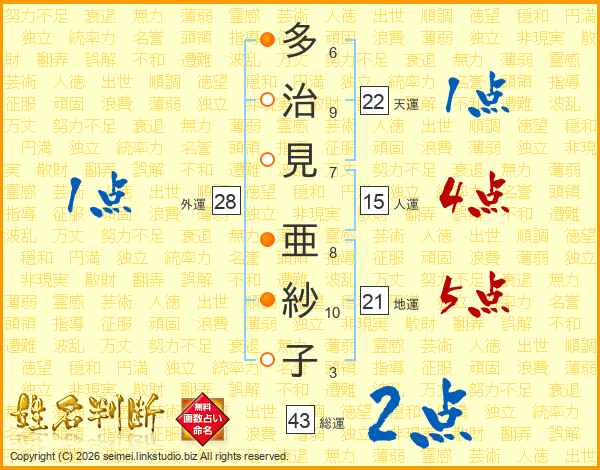 多治見亜紗子さんの総運は43画の2点!