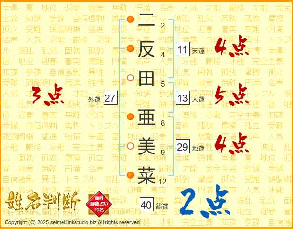 二反田亜美菜さんの天運は11画の4点!