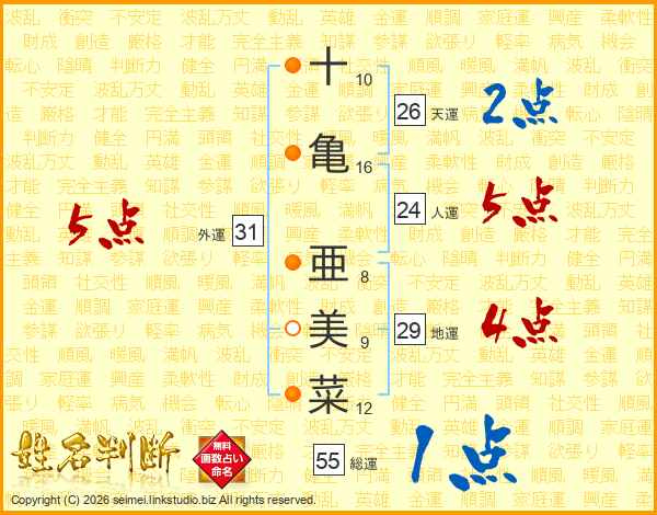 十亀亜美菜さんの天運は26画の2点!