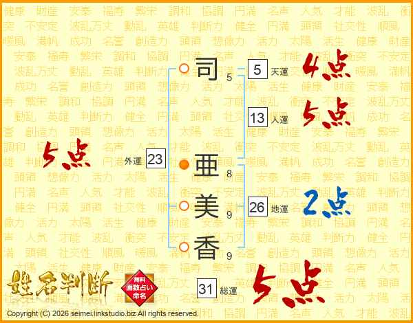 司亜美香さんの総運は31画の5点!