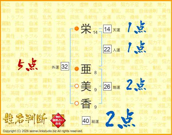 栄亜美香さんの総運は40画の2点!