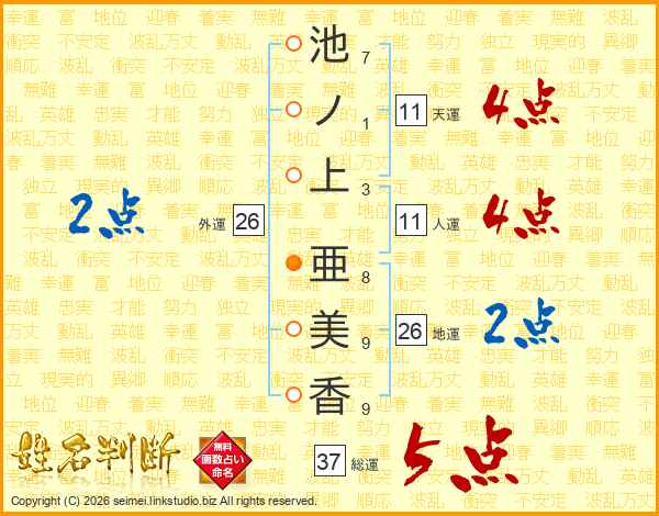 池ノ上亜美香さんの総運は37画の5点!