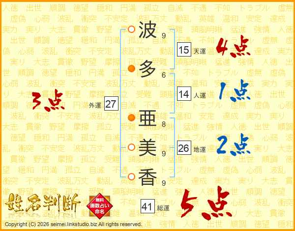 波多亜美香さんの総運は41画の5点!