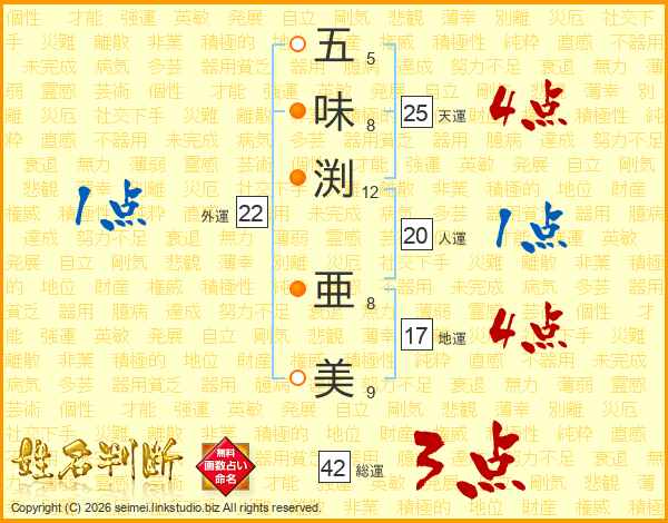 五味渕亜美さんの総運は42画の3点!
