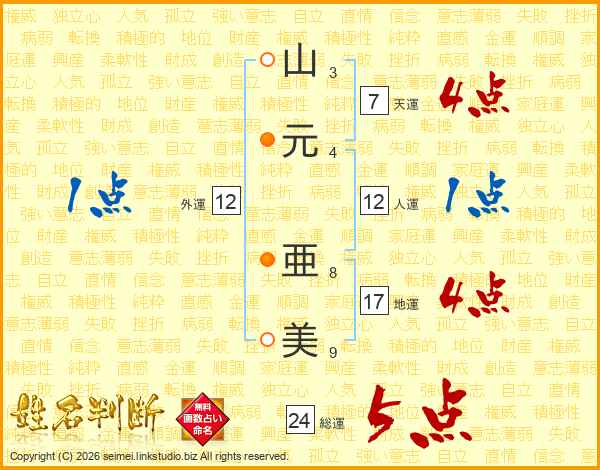 山元亜美さんの総運は24画の5点!