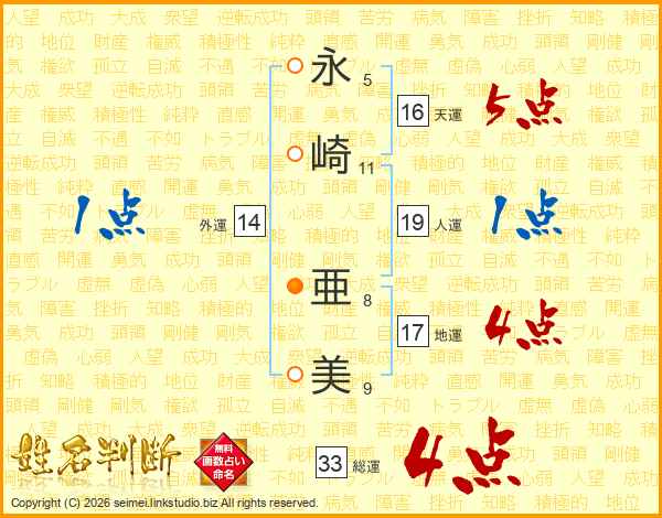 永崎亜美さんの総運は33画の4点!