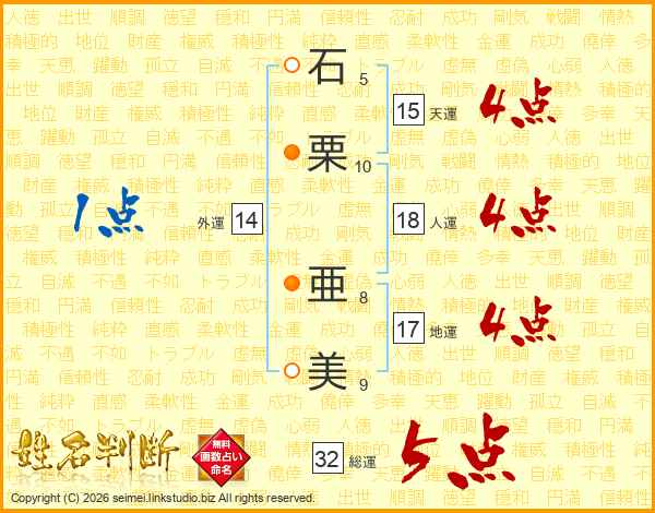 石栗亜美さんの総運は32画の5点!