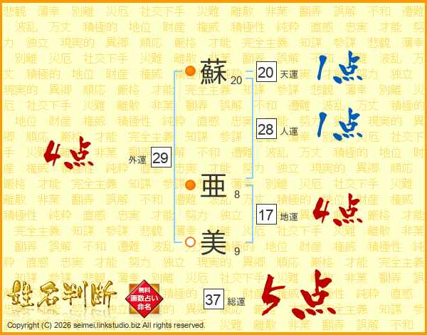 蘇亜美さんの総運は37画の5点!