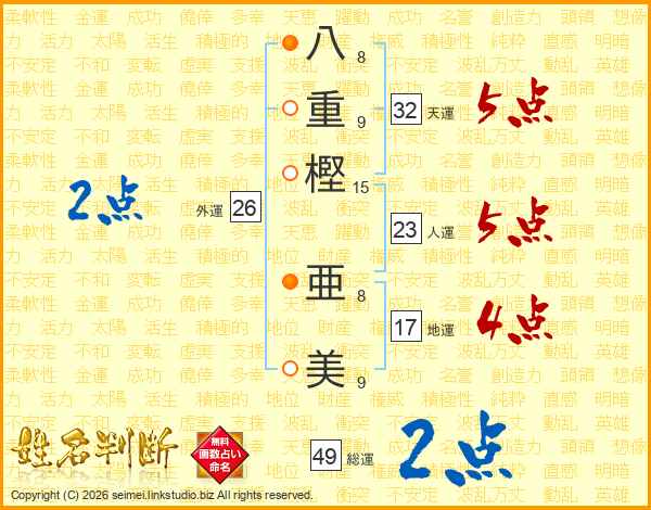 八重樫亜美さんの総運は49画の2点!