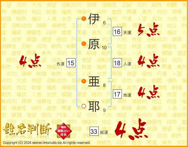 伊原亜耶さんの総運は33画の4点!
