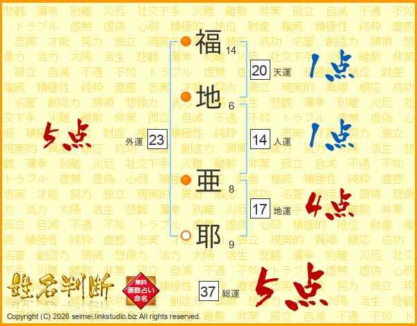 福(14画)地(6画) 亜(8画)耶(9画)