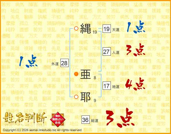 縄亜耶さんの総運は36画の3点!