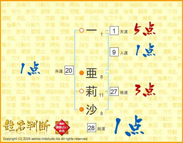 一亜莉沙さんの総運は28画の1点!