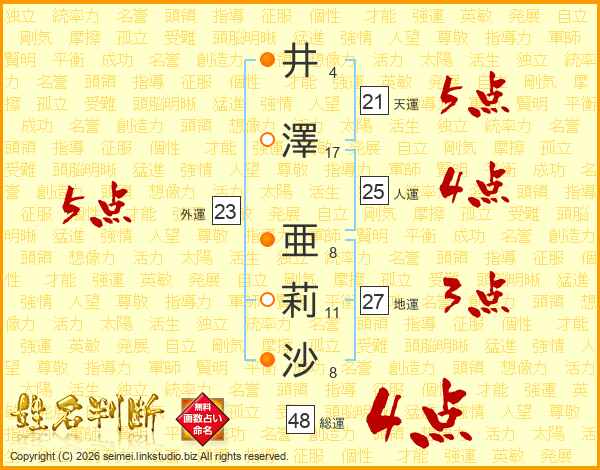 井澤亜莉沙さんの総運は48画の4点!