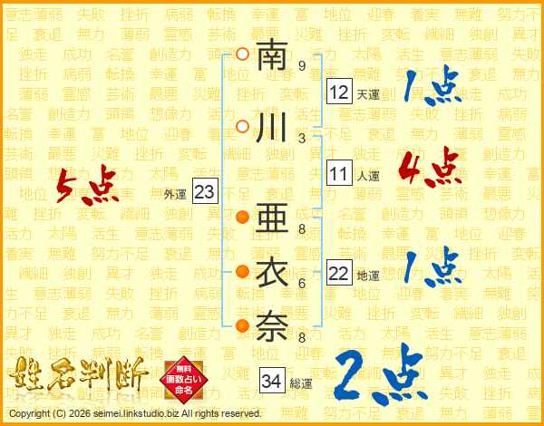 南川亜衣奈さんの人運は11画の4点!