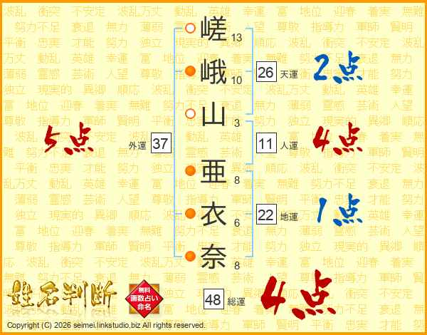 嵯峨山亜衣奈さんの外運は37画の5点!
