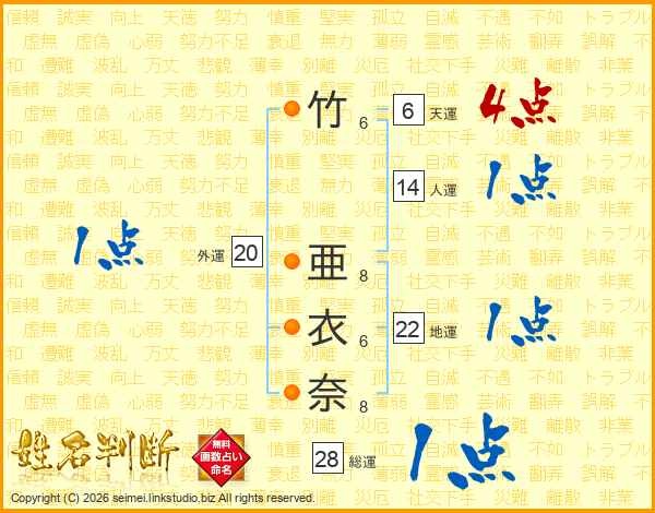 竹亜衣奈さんの総運は28画の1点!