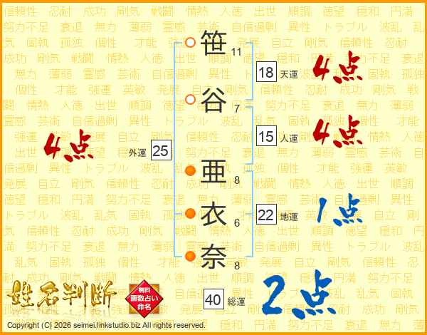 笹谷亜衣奈さんの総運は40画の2点!