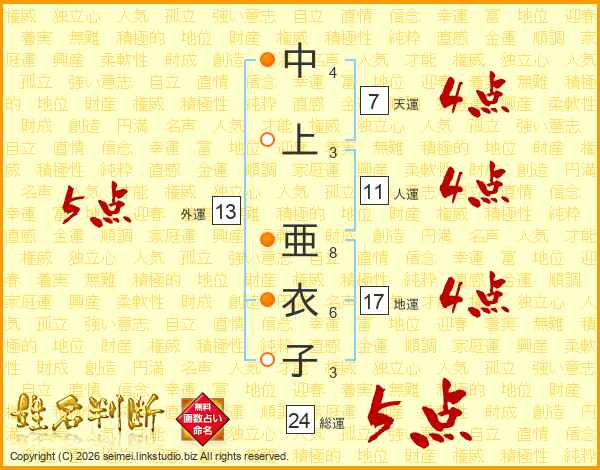 中上亜衣子さんの外運は13画の5点!