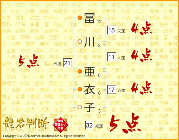 冨川亜衣子さんの総運は32画の5点!