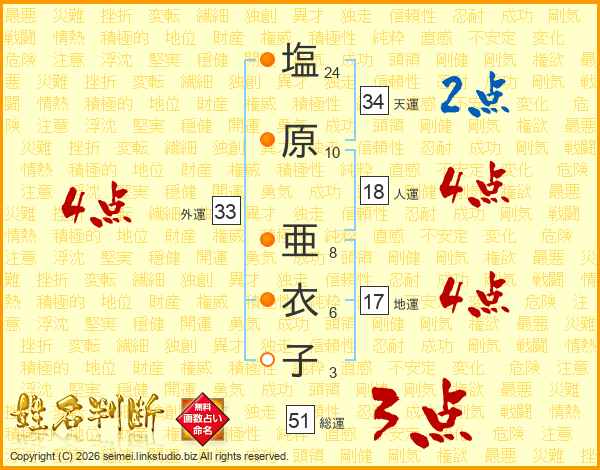 塩原亜衣子さんの総運は51画の3点!