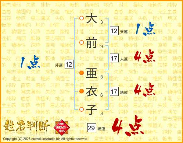 大前亜衣子さんの総運は29画の4点!