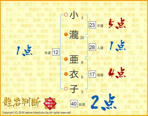 小瀧亜衣子さんの総運は40画の2点!