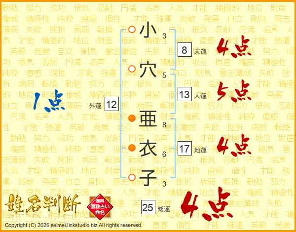 小穴亜衣子さんの総運は25画の4点!