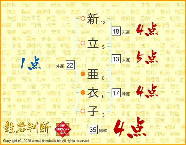 新立亜衣子さんの総運は35画の4点!