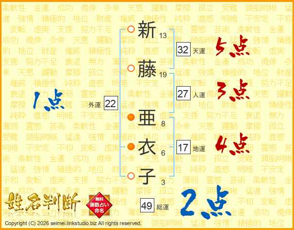 新藤亜衣子さんの天運は32画の5点!