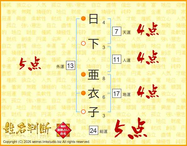 日下亜衣子さんの天運は7画の4点!
