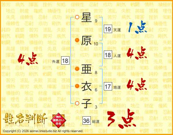 星(9画)原(10画) 亜(8画)衣(6画)子(3画)