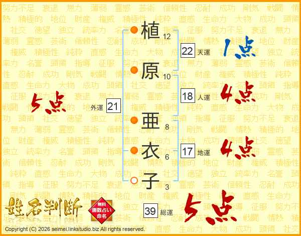 植原亜衣子さんの総運は39画の5点!