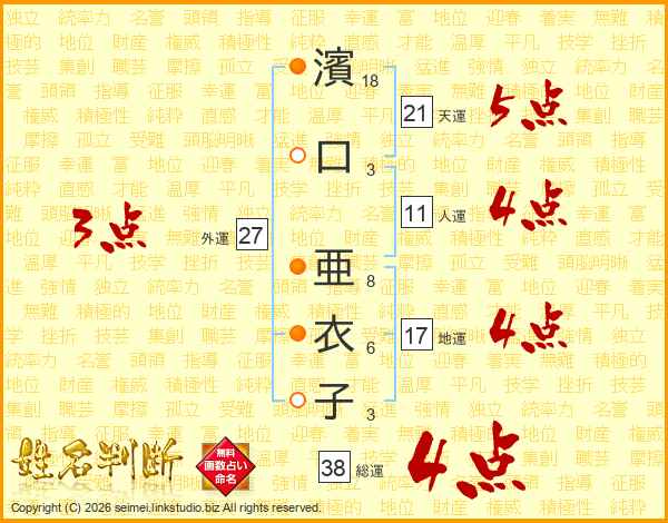 濱口亜衣子さんの総運は38画の4点!