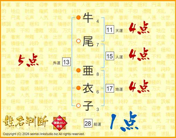 牛尾亜衣子さんの天運は11画の4点!