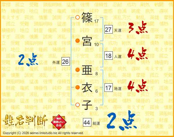 篠宮亜衣子さんの外運は26画の2点!
