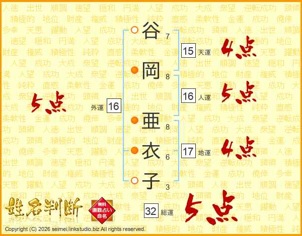 谷岡亜衣子さんの総運は32画の5点!