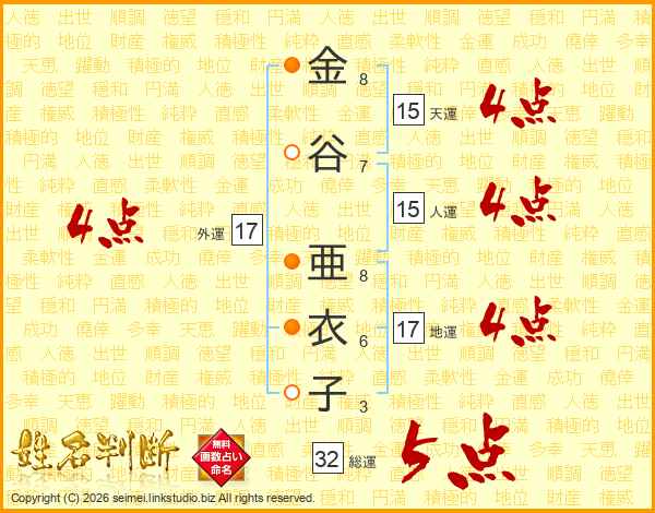 金谷亜衣子さんの総運は32画の5点!